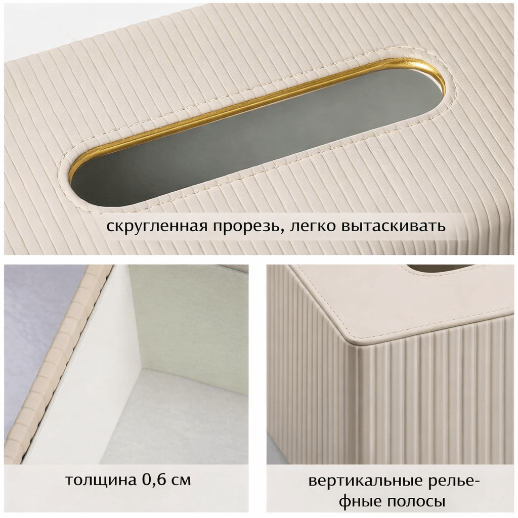 Салфетница выполнена из высококачественной водонепроницаемой кожи, устойчивой к влаге, загрязнениям и ежедневному использованию, что обеспечивает аккуратный внешний вид надолго.