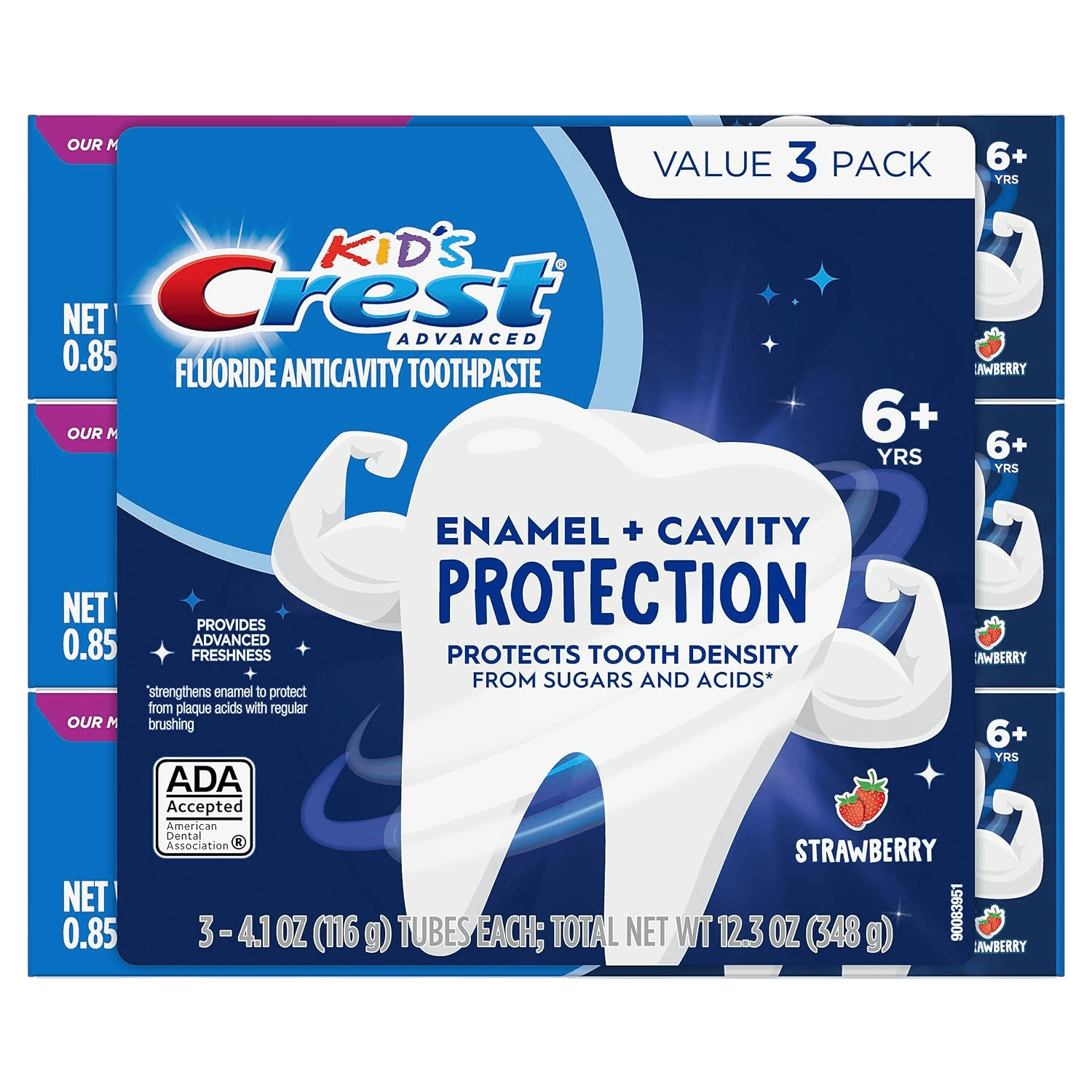 Crest Kids Enamel + Cavity Protection — это лучшая защита детских зубов от бренда Kid’s Crest, №1 среди детских зубных паст в США. Формула создана специально для укрепления эмали, защиты от кариеса и бережного ежедневного ухода за детскими зубами. Паста имеет приятный клубничный вкус, который делает чистку зубов более приятной и мотивирует детей чистить зубы регулярно.