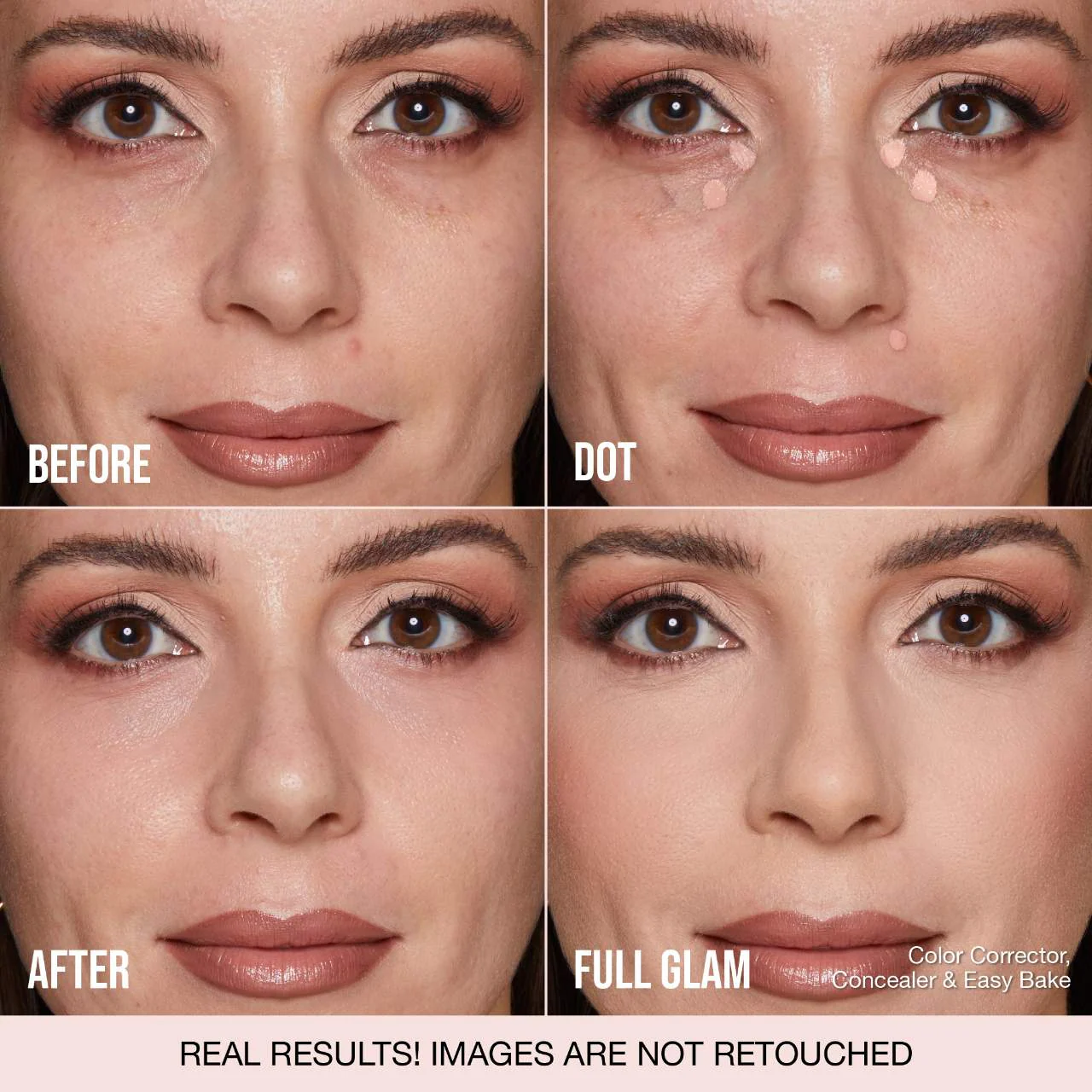 Нанесите три точки корректора под глаза и слегка растушуйте для создания эффекта яркости. Для точечной коррекции используйте на темных пятнах или других проблемных зонах.