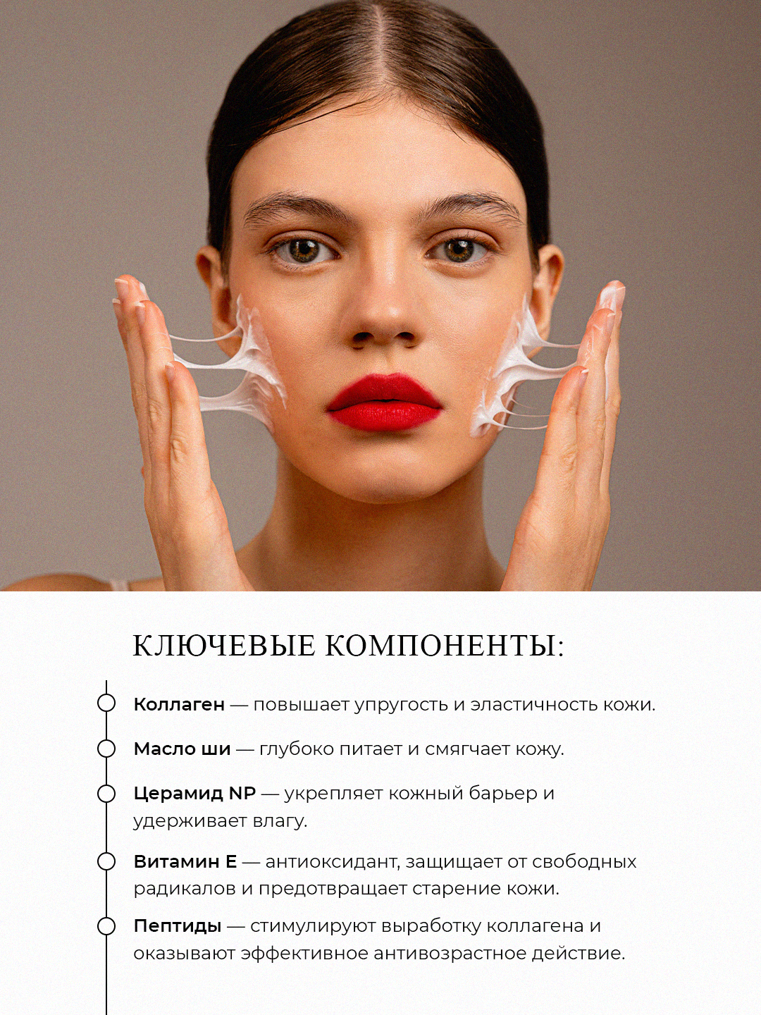 Пептиды — стимулируют выработку коллагена и оказывают эффективное антивозрастное действие.