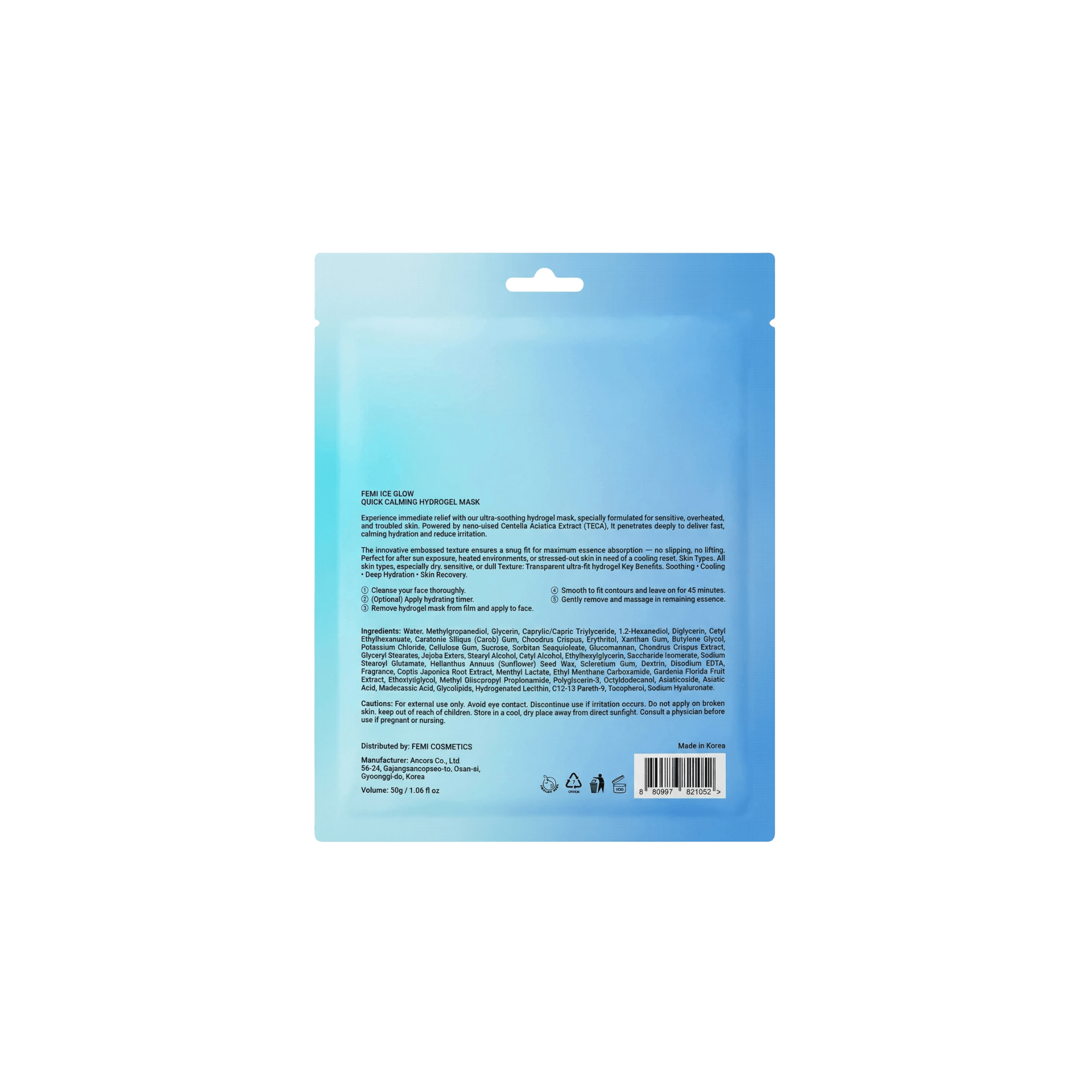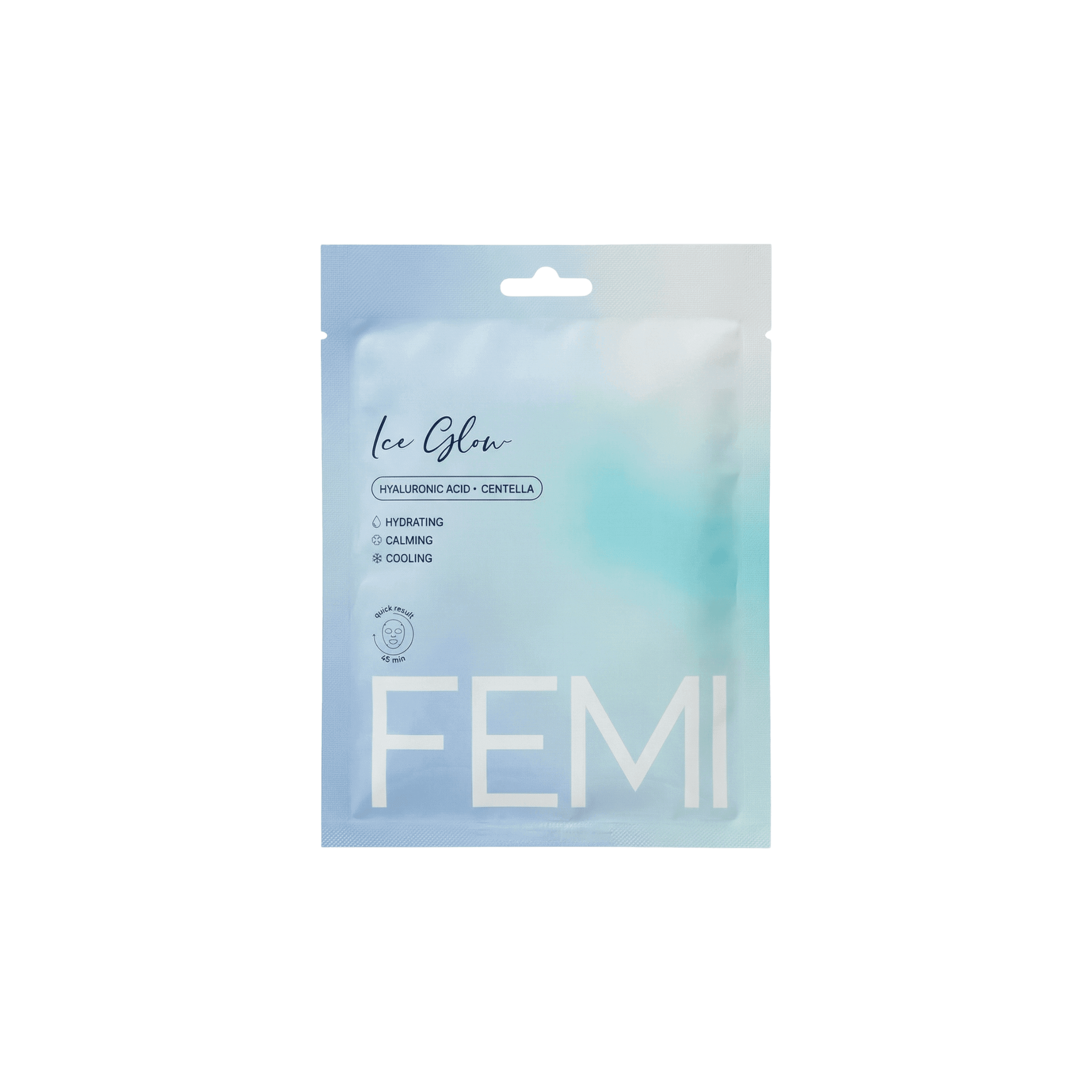 FEMI ICE GLOW Quick Calming Hydrogel Mask — охлаждающая успокаивающая гидрогелевая маска “вторая кожа”, 50 г (Korea)