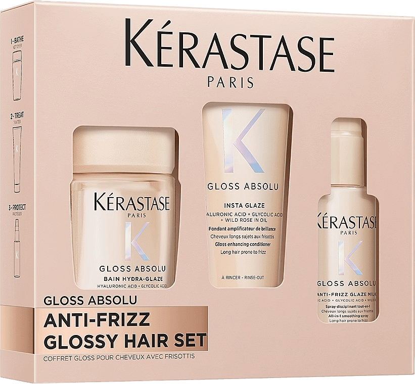 Мини-набор из серии Gloss Absolu для зеркального блеска и гладкости волос. Средства работают в комплексе, чтобы сделать волосы более мягкими, гладкими и сияющими, а также защитить их от пушистости. Идеально подходит для знакомства с серией или для поездок.